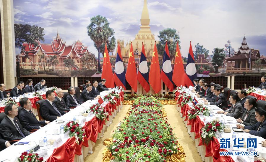 習近平強調,中老政治制度相同,理想信念相通,前途命運相連,共同利益廣泛,合作潛力巨大。中方高度重視發展同老撾關係,願同老方繼續秉承“長期穩定、睦鄰友好、彼此信賴、全面合作”十六字方針和“好鄰居、好朋友、好同志、好夥伴”精神,落實好這次訪問期間中老兩黨兩國領導人就推進新時期中老全面戰略合作達成的共識,共同打造中老具有戰略意義的命運共同體。