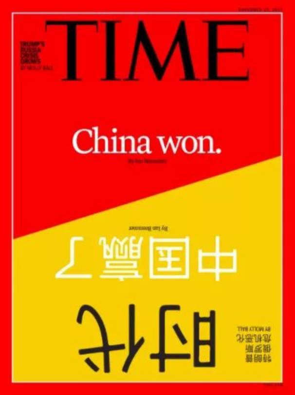 11月13日,最新一期的美國《時代週刊》封面上,以中英文寫着“中國贏了”,這是《時代》週刊封面第一次出現兩種語言。 在內文《中國經濟是如何贏得未來的》一文中,作者布雷默指出,如今,中國已經成為全球經濟中最具實力的國家。