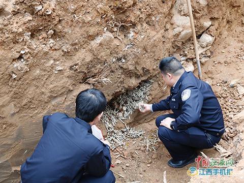 據瞭解,11月13日下午15時許,大余縣公安局110指揮中心接到工地工人報警,稱在施工挖土時挖出了許多子彈和幾個很像是手榴彈的“鐵疙瘩”。接警後,民警立即趕往並封鎖了施工現場,同時申請防爆專家到場支援。