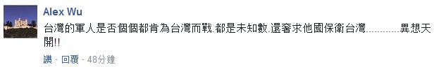 對於艾利森的言論,台灣網友認為,連台軍能否為台灣而戰都是未知數,還奢求他國保衞台灣,簡直是異想天開。也有台灣網友認為,美國本來就不會為台灣開戰,“台獨”不會有任何國家支持,別做夢,也有網友響應,“現在不會,將來也不會。”