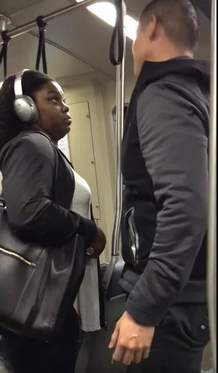 眼看事件升級成為肢體衝突,車廂內其他乘客開始發出零星的質疑聲,被襲擊的亞裔男子也憤然起身,做出言語回應,並把戴在頭上的耳機扔在座位上,似乎想要予以反擊。這一時刻車廂內的乘客才真正地行動起來,他們紛紛向亞裔男子喊話,讓他控制情緒。不要衝動。“不要這麼做,他根本不值得你動手。”除了此起彼伏地勸説聲,一名非裔女性還走上前安撫亞裔男子,擋在他和白人男子的中間。