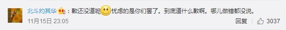 網友@北斗灼其華:歉還沒道呢[微笑]憂慮的是你們罷了。到底道什麼歉啊。哪兒做錯都沒説。