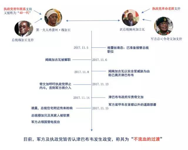 大約從三年前開始,由於穆加貝日漸年高,身體狀況變差,津巴布韋執政黨津民盟(ZANU-PF)內部,圍繞“後穆加貝時期”的領導權之爭,也日漸加劇。由此,形成了兩大陣營。