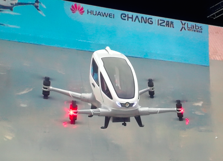 在全球移動寬帶論壇現場,環球網科技記者看到了主屏幕上播放的可載人無人機飛行的直播畫面,4.5G商用網絡為無人機的超視距控制、數據傳輸和飛行提供了有力保障。