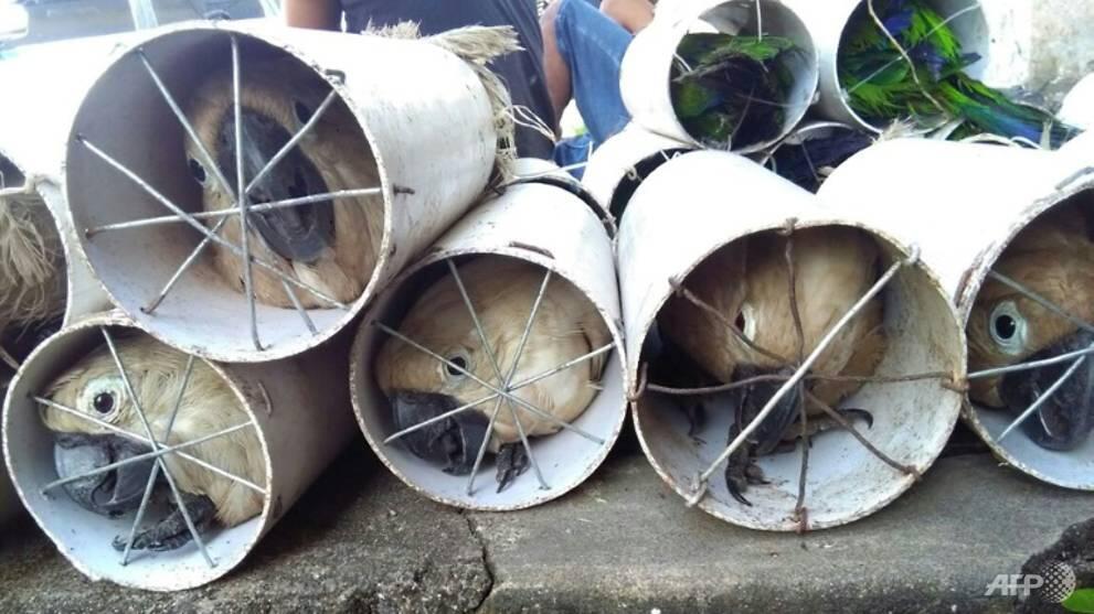 【環球網綜合報道】據新加坡亞洲新聞台11月16日報道,警方在印尼抓捕到4名鸚鵡走私人員,他們將125只珍稀鸚鵡藏於排水塑料管裏,企圖走私。
