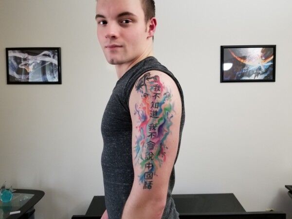 美國一小哥大愛中文秀刺青:我不知道,我不會説中國話(圖)