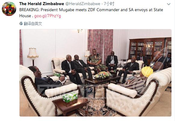 【環球網報道 記者 趙衍龍】津巴布韋總統穆加貝16日在首都哈拉雷總統官邸和武裝部隊總司令奇温加直接談判,但他拒絕立刻下台,穆加貝仍堅持自己是津巴布韋唯一合法總統,目前局勢仍不明朗。英國《獨立報》11月16日報道稱,這是穆加貝在該國發生“軍事接管”後首次露面,其中南非特使也參與了會面。英國天空新聞網報道稱,從照片中可以看到穆加貝面帶微笑。