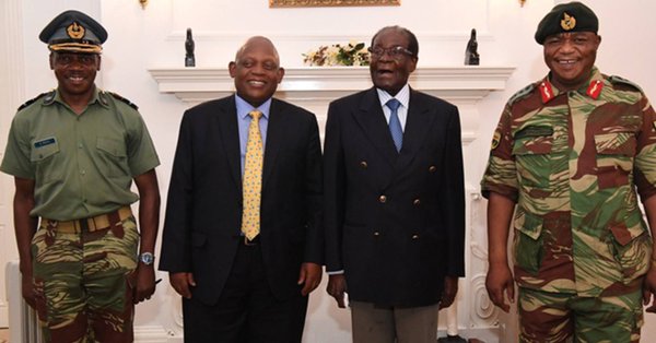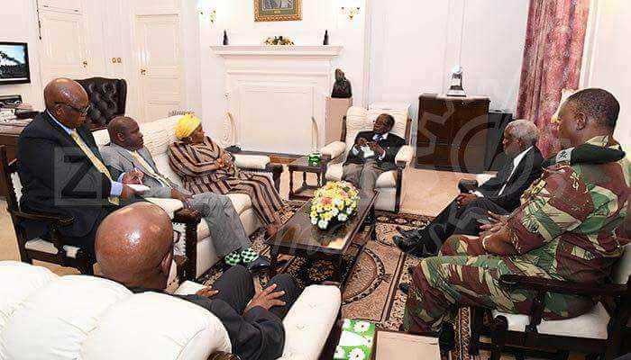 津巴布韋當地媒體發佈穆加貝(右二)和奇温加(右一)會晤的照片,在場的包括兩名來自南部非洲發展共同體的南非特使。