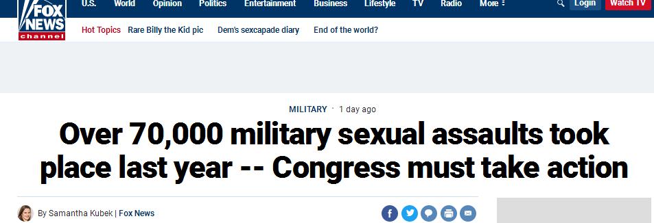 而這只是性侵指控的數字。美國福克斯新聞網則報道稱,單就2016年而言,在軍方內部就有超過7萬起性暴力事件,並呼籲美國國會盡快採取行動。