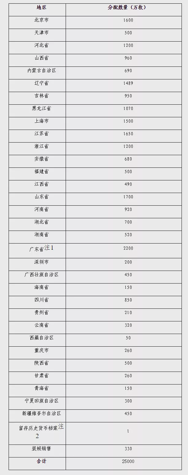 3.中國人民銀行可能根據各地預約情況對各省、自治區、直轄市的分配數量進行調整,調整結果將另行公佈。