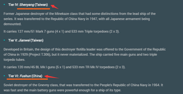 在戰艦世界(World of Warships)的介紹上,可以看到遊戲將台灣軍艦標註為“Taiwan”,中國軍艦則標註成“China”,暗指這兩艘軍艦來自“不同國家”。 島內親綠媒體報道此事,再度叫囂“一邊一國”。