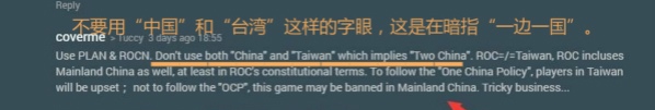 該事立刻在遊戲平台上掀起了兩岸網友的熱議,更有大陸玩家在微博上發帖表達自己的不滿。