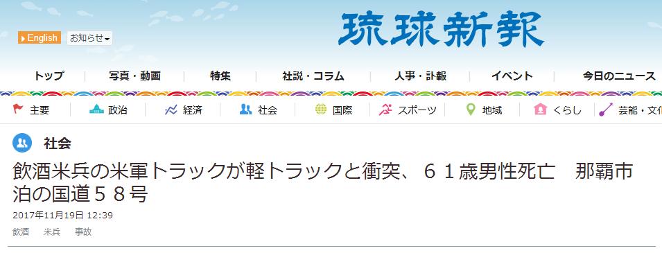 報道稱,那霸警方目前正將該名大兵進行扣留,並調查他是否有酗酒的歷史,以及整件事的具體事發經過。另外,美國軍方表示,事故發生時,該名士兵及卡車並非在任務的期間。