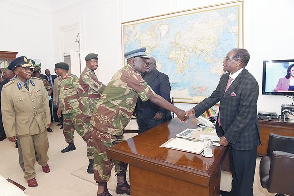 19日,穆加貝還與該國軍方高層舉行會面,照片顯示,穆加貝一身西裝,神情平靜。美國哥倫比亞廣播電台説,津官員沒有披露會談細節,但軍方看上去支持穆加貝自願請辭,為維持他在政治轉型中的合法地位。而穆加貝可以利用自己現存的所有槓桿保留他作為非洲一位解放運動領導人的遺產,甚至保護自己及其家人免遭可能的起訴。
