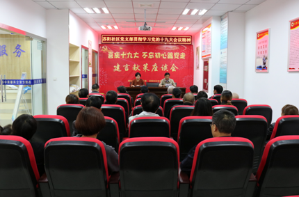 蘇陽社區在十九大召開之後緊靠時代熱點,學習會議精神,陸續開展了一系列學習交流活動讓大家更加深刻了解十九大的精神含義以及知識,補足共產黨員精神上的“鈣”,高揚信念之“帆”,更好的發揮基層黨組織的作用,讓社區居民真正感知十九大報告帶來新變化、新思想、新目標和新徵程。(陳馨)