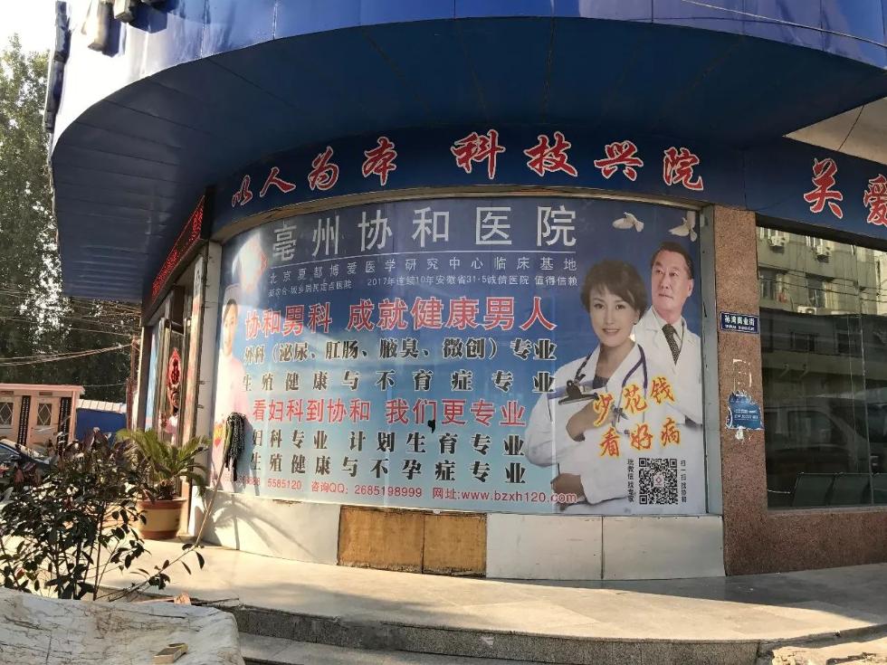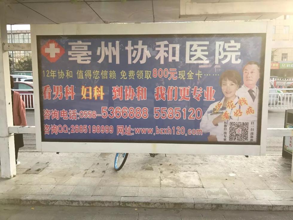 路兩邊還有亳州協和醫院、中山醫院等民營醫院的廣告,均主推男科。