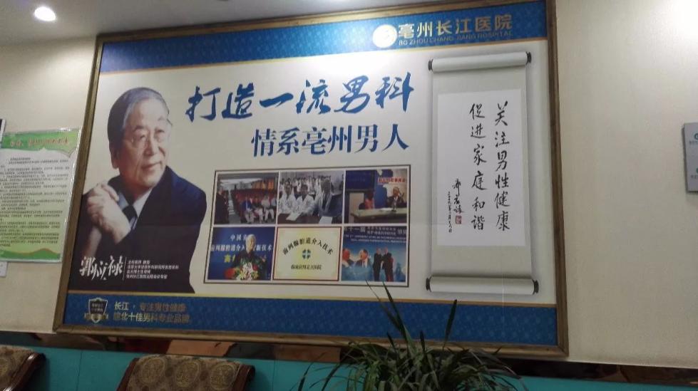 亳州長江醫院二樓男科診室外,掛着我國男科帶頭人郭應祿院士的照片和他們醫院的廣告語,而郭院士卻不認識他們