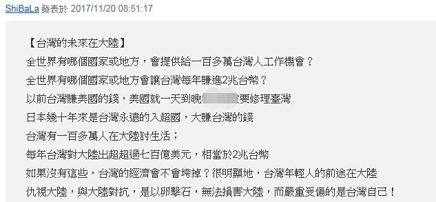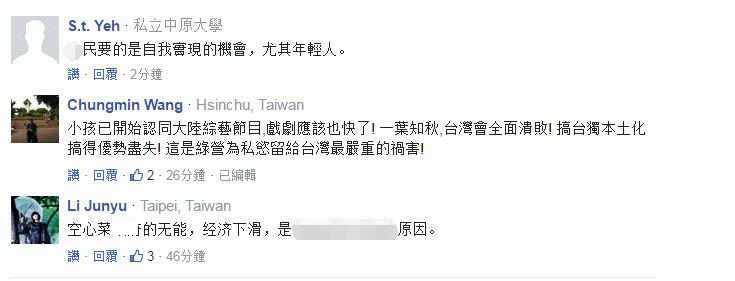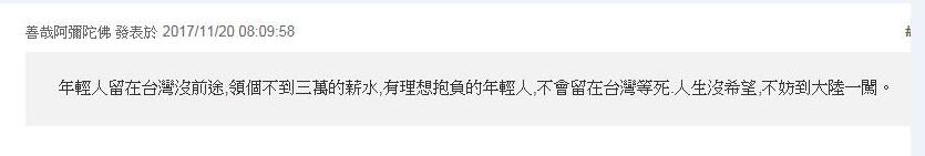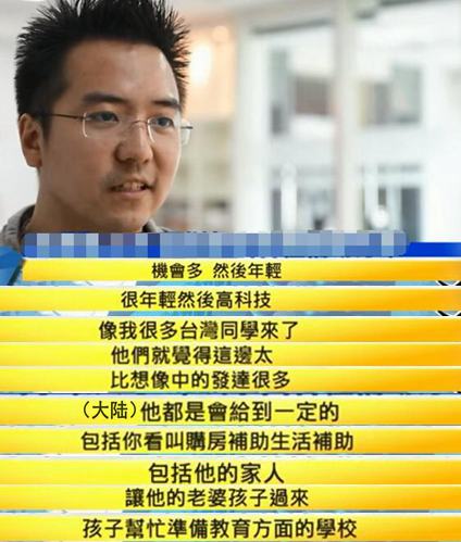 台灣網友也給出瞭解釋,台灣被“空心菜”搞得虛無縹緲,大陸卻是一片熱火朝天:“綠營”為私慾而搞“本土化”,結果令台灣優勢盡失,經濟嚴重下滑,找工作也越來越難,有理想有抱負的台灣青年與其在台灣“等死”,不如到大陸求發展。