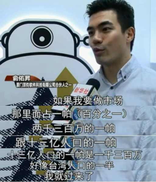 他們説:台灣的市場跟規模小 ,業務沒有辦法拓展,大陸不僅市場大,“一帶一路”政策還讓他們有機會將自家業務拓展到世界;