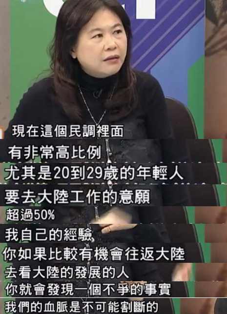 台灣前北市副市長李永萍是這樣説的:不管你蔡英文怎樣搞“去中”,但是有機會往返大陸去看對岸發展的台灣民眾,都會認識到一個不爭的事實:我們的血脈是不可能割斷的!