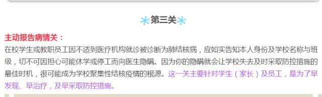在中國疫病預防控中心“結核病預防控制中心”的官方微信號“結核那些事兒”上,多篇講述如何預防校園肺結核疫情的文中也都提到感染者【主動報告病情】是成功防控校園肺結核的重要關口,“切不可因擔心休學或其他因素而隱瞞”。