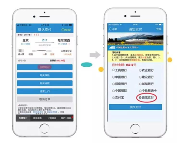 據瞭解,自11月23日起,微信支付全面接入12306購票平台,用户在12306官網或官方APP上可使用微信支付購買車票。同時,各城市鐵路局線下購票網點及ATM自助售票機購票近期也將陸續支持微信支付,為旅客提供多線上線下多樣化、個性化的便捷支付方式。