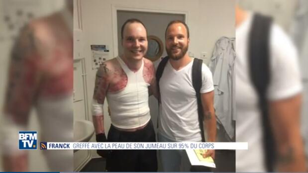 事情要追溯到2016年9月27日,法國男子弗蘭克被送入聖路易醫院的專門中心。工作事故導致其全身燒傷面積達95%,弗蘭克當時幾乎已必死無疑。但幸運的是,醫生得知弗蘭克有一名雙胞胎兄弟。後者為了挽救弗蘭克的性命,同意給出自己的皮膚。