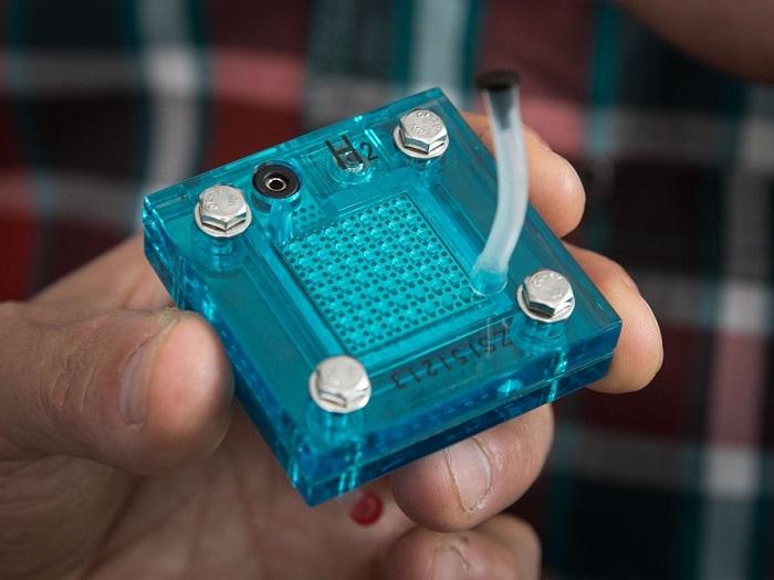 UCLA 的這款裝置,將超級電容和氫燃料電池混裝到了一起,並且可以只依賴太陽能來運轉。除了正常的正負電極,該裝置還有可以儲存電能、或者利用它將水電解成為氫氣和氧氣的“第三電極”。