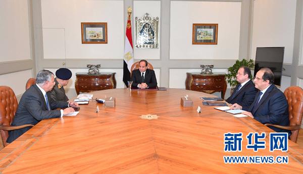 11月24日,在埃及首都開羅,埃及總統塞西(中)在襲擊發生後召開全國反恐委員會緊急會議商討對策。新華社發