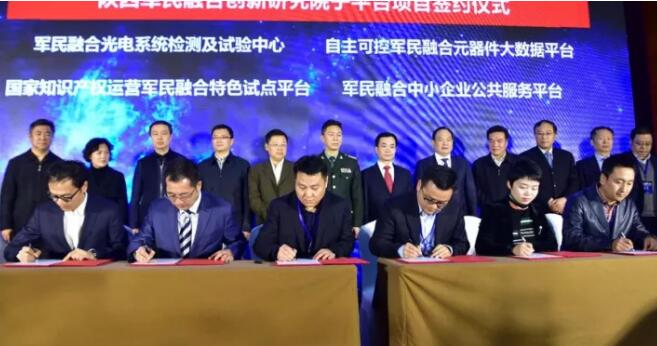 軍事科學院軍民融合研究中心秘書長於川信、國家國防科工局系統工程一司副司長張寶紅、科技部火炬中心金融處處長李文雷等領導出席活動併為獲獎企業和團隊頒獎。西安航天基地黨工委委員、管委會副主任蔣陽,陝西軍民融合創新研究院執行院長李燕分別與軟件定義衞星標準化平台、宇航級運動部件試驗檢測平台、軍民融合“物聯網+”電裝平台、無人機系統維保中心、軍民融合光電系統檢測及試驗中心、自主可控軍民融合元器件大數據平台、國家知識產權運營軍民融合特色試點平台、軍民融合中小企業公共服務平台等8個子平台簽約。