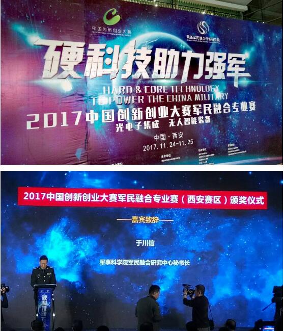【環球網軍事報道】11月25日,2017中國創新創業大賽軍民融合專業賽(西安賽區)頒獎典禮暨“空間科技產業發展”高峯論壇在西安曲江國際會議中心隆重舉行。本次大賽是在中國創新創業大賽組委會辦公室、陝西省發改委、陝西省科技廳、陝西省國防科工辦、中科院西安分院的指導下,由西安市發改委、西安高新區、西安航天基地、中科院西安光機所主辦,由設立在西安民用航天基地的陝西軍民融合創新研究院承辦。