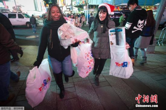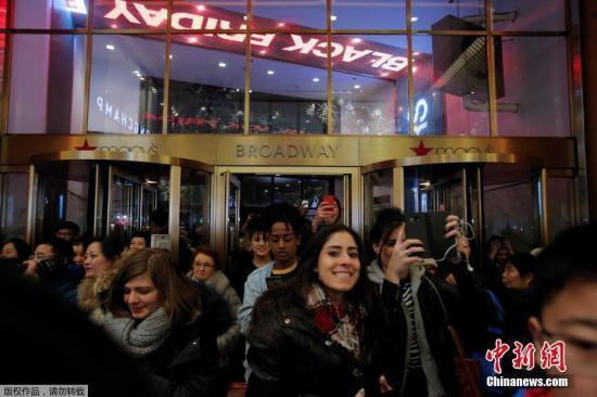 當地時間2017年11月23日,美國紐約迎來“黑五”季,民眾在梅西百貨購物。“黑五”是指每年11月的第四個週五,傳統上這是美國民眾聖誕節大采購的第一天。