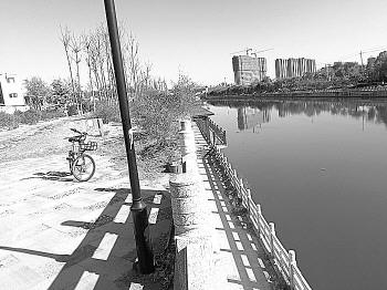 24日上午10點多,記者來到天橋區北辛莊路北辛橋附近。在橋東側100米左右,記者找到了事發現場。事發地是河岸邊的一處小廣場,同下方的河岸落差有三四米,南側裝有石質護欄,護欄延伸到東側後停止,留下兩米的缺口。一輛共享單車停在缺口處岸邊,車筐和車把上有明顯碰撞的痕跡,黑色油漆已經被磨掉,男子疑似從該缺口處將單車扔下河岸。