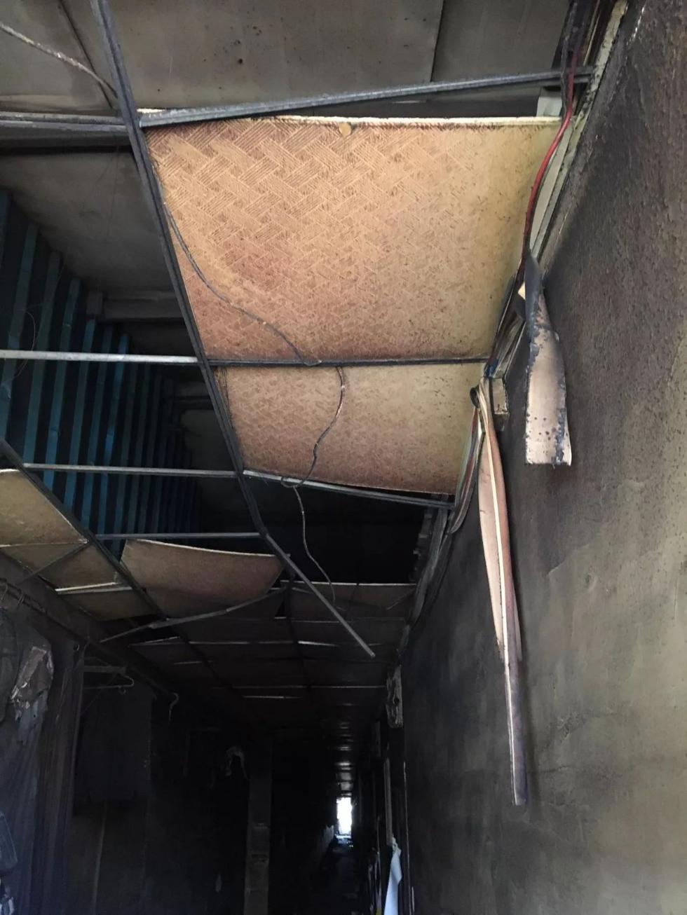 據瞭解,樓頂的材料是聚苯彩鋼板,發生火災後會燃燒得非常快,並且產生大量有毒煙氣。由於房間內的隔牆都沒有封到頂,火災發生時,煙氣會通過上方的悶頂迅速擴散至每個房間,而不是通過走廊慢慢擴散,這導致房間內人員的逃生時間大大縮短。