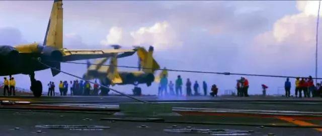 聲如千騎疾,氣卷萬山來。驚心動魄的一幕出現了:9時08分,伴隨震耳欲聾的噴氣式發動機轟鳴聲,眨眼之間,艦載機的兩個主輪觸到航母甲板上,機腹後方的尾鈎牢牢地掛住了第二道阻攔索。剎那間,疾如閃電的艦載機在阻攔索系統的作用下,滑行數十米後,穩穩地停了下來。