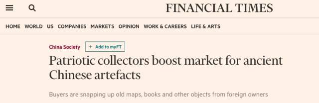 於是,英國《金融時報》網站報道:“中國收藏家正在世界各地追尋中國文物。”