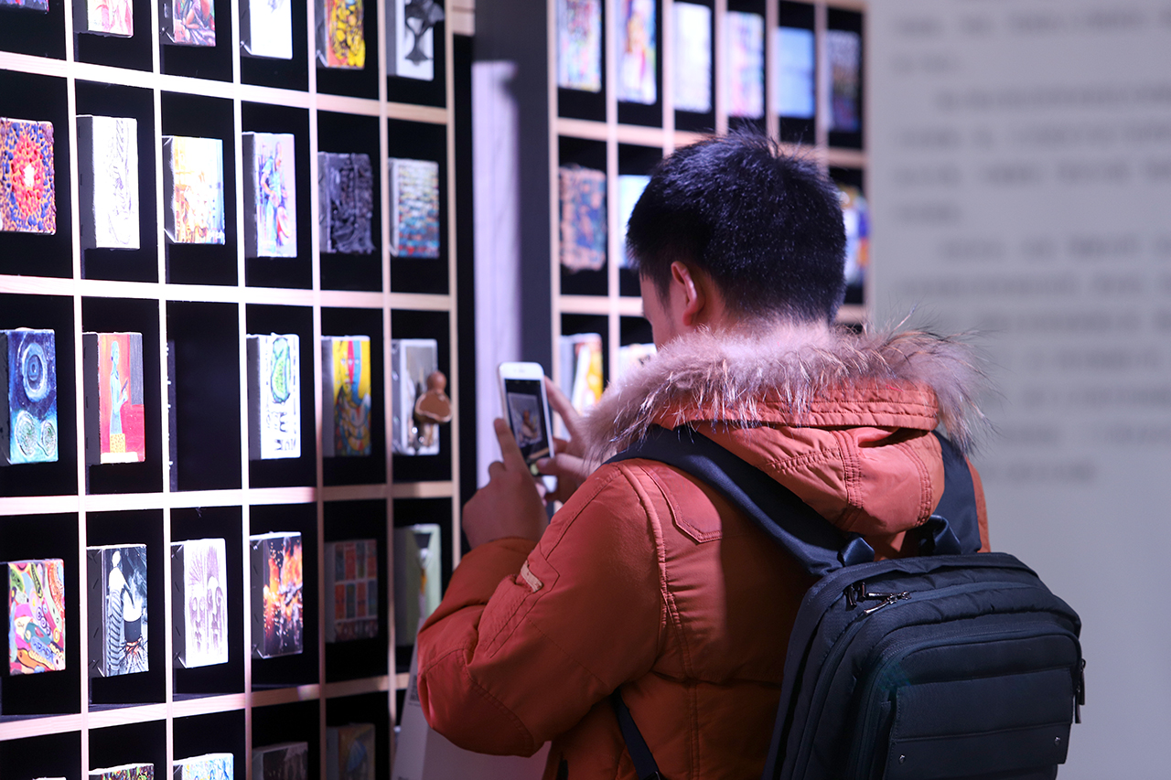 青年藝術家趙羽彤,向大家分享了她自己和由她召集的青年藝術家朋友們的部分作品。她説,藝術家在探索自己生命領域的過程中,每個時間段所面臨的問題與思考,通過畫面的傳遞要比語言直觀得多。“多彩中國”大展發起的微型藝術創作,將一個個小畫框彙集起來,相當於把每個生命個體融匯在一起,不分國界和年齡,通過時間和空間形成一個濃縮的宇宙。她相信,“多彩中國”大展的未來成果將是振奮人心的。