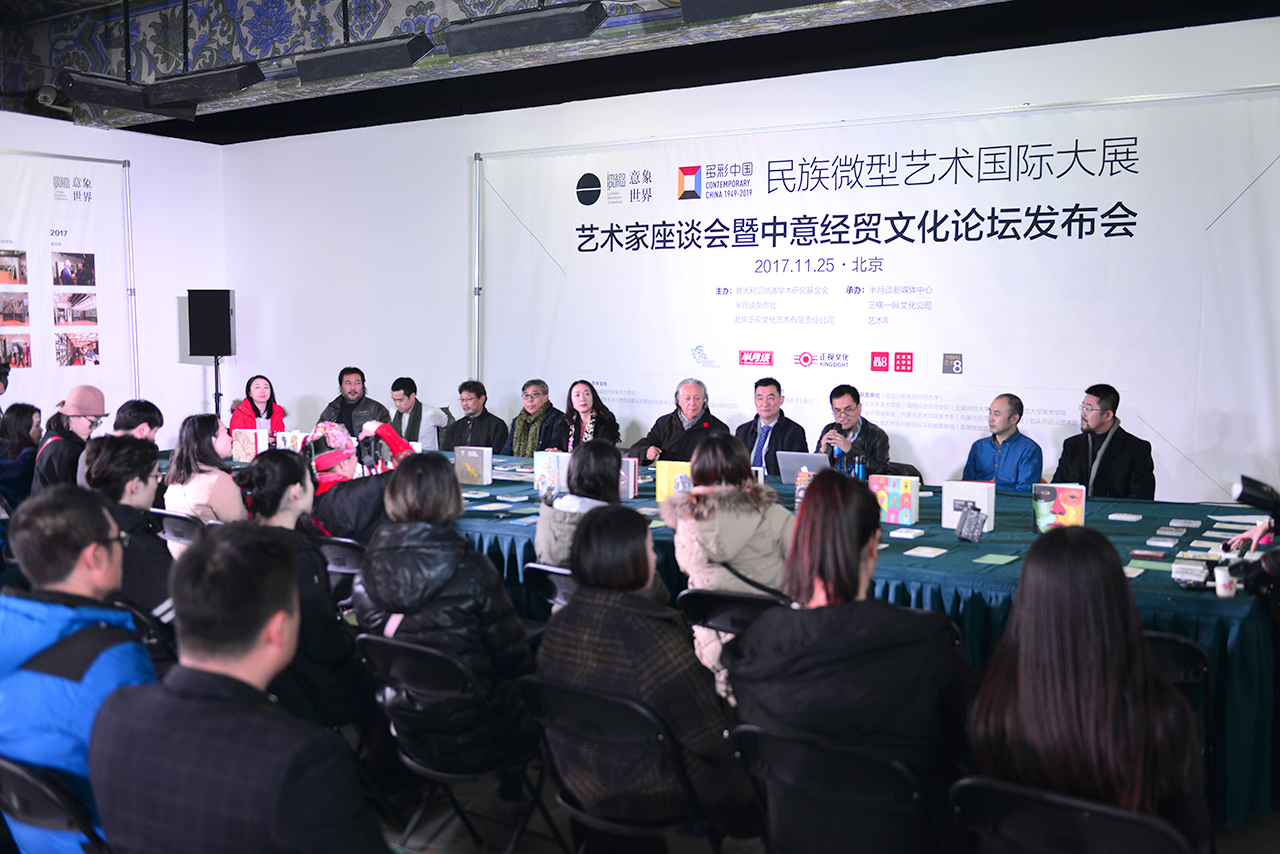 【環球網綜合報道】11月25日下午,由意大利貝納通學術研究基金會、尚8文化集團、半月談雜誌社和北京正視文化藝術有限責任公司主辦,半月談新媒體中心、三橫一縱文化公司和藝術8承辦的“多彩中國——民族微型藝術國際大展”藝術家座談會暨中意經貿文化論壇發佈會在北京藝術8舉行。