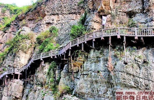 ▲這是四川省廣元市朝天區老虎口(2002年10月25日攝)。該處系1936年修建的川陝第一條國道的咽喉要地。如今這裏只是作為旅遊景點被人蔘觀。新華社記者陶明攝