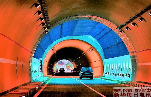 ▲汽車行駛在西(安)漢(中)高速公路酉水隧道羣內(2007年9月30日攝)。2007年9月30日正式通車的西漢高速公路主線全長255公里,全線設互通式立交13處,橋樑540座,隧道136座,其中穿越秦嶺段橋隧工程佔線路總長的76%,西安至漢中的行車時間由6小時縮短為3個小時。至此,西安至成都的公路實現全高速化,“千里蜀道一日還”的夢想變成現實。