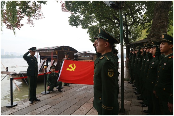 在第四屆世界互聯網大會即將召開之際,桐鄉中隊的戰士們特意來到在中國革命的發源地之一-南湖,向黨旗宣誓表達對黨的忠誠。他們誓言傳承紅船精神,讓十九大的強軍號角指引自己前進的方向,用行動交出一份完美的答卷。