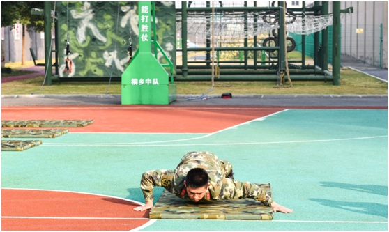 部隊不僅是一個孤獨堅守的哨位、摸爬滾打的訓練場、炮火硝煙的演習場合成體,更是一個專屬青春、盛滿夢想的舞場。而在日常的訓練中,桐鄉中隊官兵將曾經枯燥的體能訓練項目與健身動作相結合,充分調動了官兵們的積極性,曾經簡單的仰卧起坐、俯卧撐變成了富有挑戰難度的組合動作,如今已經成為了戰士們的興趣愛好。