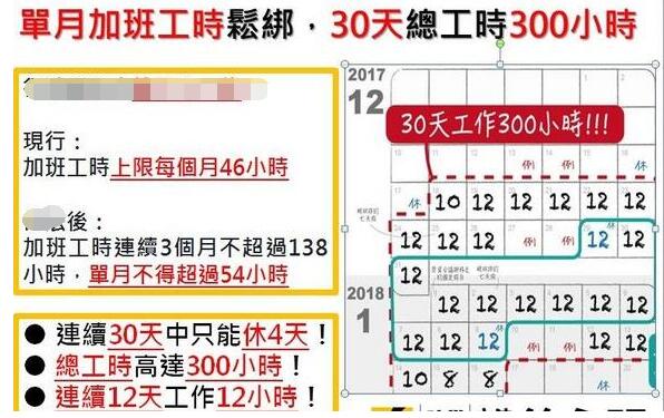 中國台灣網11月27日訊 據台灣“東森新聞雲”報道,“勞基法”相關“修法”爭議沸沸揚揚,“立委”徐永明日前質詢時曾提出30天300小時的班表,有媒體進一步結合彈性工時規定,竟排出30天內工時高達336小時的“終極班表”;對此,台“勞動部”卻回答説,此種班表排法並不違法,但屬“極端案例”。