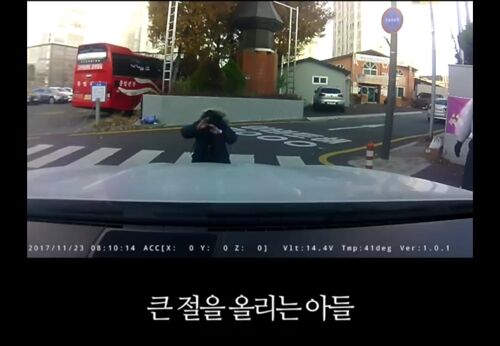 全允哲這才放下心來,拍拍兒子的背説“快去考場吧”。這段故事正好被車上的行車記錄儀拍下來。全允哲就將視頻編輯後發到了youtube上,並引發巨大關注,約3小時就有7000多點擊量。