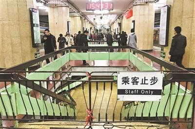 昨天下午,北青報記者在地鐵2號線東四十條站東南口前看到,地鐵3號線一期01標的工地已經搭建起來。東四十條站內,開闊的站台中央兩側各有一處通往地下的十幾級老式台階,但下樓梯的入口有一道鐵柵欄,掛着“乘客止步”的牌子。在站台上,北青報記者看到樓梯拐彎的盡頭是一處地下空間。“下面是什麼地方?”地鐵東四十條站的工作人員回答稱,那是地鐵3號線的預留車站,但現在不能下去,“底下又黑又髒。”