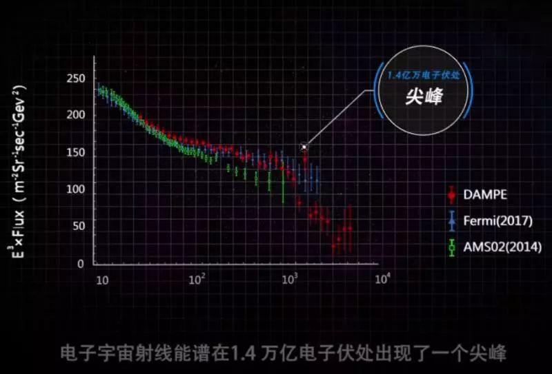 在它530個日夜的記錄下,科學家終於發現了一些此前從未預測到的跡象:電子宇宙線能譜在1.4萬億電子伏處出現了一個尖峯!