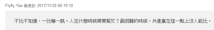 對此,台灣網友評論道:“不比不知道,一比嚇一跳。人在什麼時候需要幫忙?最困難的時候。共產黨在這一點上沒人能比。”還有網友譏諷説:“蔡當局可以包機接海外詐欺犯回台後立刻釋放,所以詐欺犯在台灣比一般百姓人權更高 。”“蔡英文表示:台灣同胞你自己想辦法回來吧,我要去享用美味的法國餐了!”