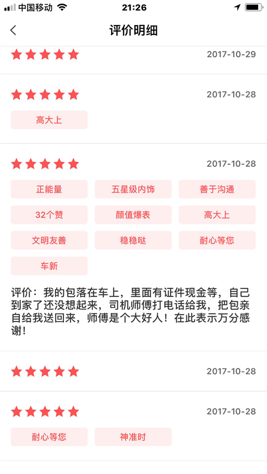 “我包裏有證件現金等,到家後我還沒意識到包落在車上,就接到了司機師傅的電話,説回來給我送包。我真是太感謝張師傅了,本想給他200塊錢補償來回的油費,可他卻説什麼都不肯收。易到的司機素質真是沒得説!”王女士難掩激動的心情。