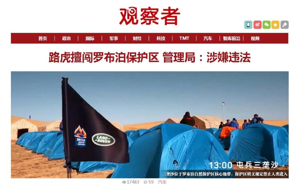 針對路虎品牌擅闖羅布泊,觀察者網聯繫到新疆羅布泊野駱駝國家級自然保護區管理局相關負責人,他對路虎的違法行為表示非常氣憤。