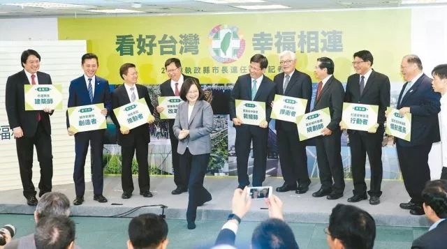 蔡英文和9位被提名的縣市長一同亮相,宣佈2018選戰開跑。民進黨也安排這9位尋求連任縣市長上台,都拿着一個牌子,寫着自己在各縣市的“身份”,蔡英文也當場問了幾位縣市長“你們是?”,9人則逐一回答,台中市長林佳龍是實踐台中夢想“裁縫師”、雲林縣長李進勇是農業綠能“捍衞者”、嘉義市長涂醒哲是奠定城市發展“規劃師”、澎湖縣長陳光復為國際海灣幸福島“領航艦長” ……